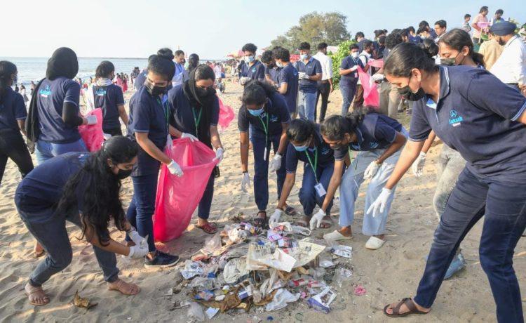 കോഴിക്കോട്: രാജ്യത്തെ പ്രമുഖ പരീക്ഷാ പരിശീലന സ്ഥാപനമായ ആകാശ് ബൈജൂസിന്റെ ആഭിമുഖ്യത്തിൽ വിദ്യാർത്ഥികൾ കോഴിക്കോട് ബീച്ച് ശുചീകരിച്ചു. പ്ലാസ്റ്റിക്ക് മാലിന്യങ്ങൾ പ്രകൃതിക്ക് ദോഷകരമാകുന്ന സാഹചര്യത്തിൽ ആകാശ് ബൈജൂസ് ആരംഭിച്ച ജംഗ് ദ പ്ലാസ്റ്റിക് എന്ന കാംപയിന്റെ ഭാഗമായാണ് ഗ്രീൻ വോംസ് എന്ന സന്നദ്ധ സംഘടനയുടെ സഹകരണത്തോടെ കോഴിക്കോട് ബീച്ചിൽ നിന്ന് പ്ലാസ്റ്റിക് മാലിന്യങ്ങൾ നീക്കം ചെയ്തത്.
