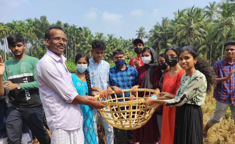മലപ്പുറം: ചേളാരി ഗവ ഹയർ സെക്കൻഡറി സ്കൂളിലെ എൻ എസ് എസ് ടീം ജൈവകർഷകൻ കെ.ടി.അനിരുദ്ധന്റെ കൃഷിയിടം സന്ദർശിച്ചു. ജൈവകൃഷി വിളവെടുപ്പ് നടന്ന പാടത്ത് വച്ച് നടന്ന ചടങ്ങിന് പ്രോഗ്രാം ഓഫീസർ രഘുവാസ് വൊളന്റിയർ ലീഡേഴ്സ് മുഹമ്മദ് ബാസിൽ, അഭിരാമി കെ.പി എന്നിവർ നേതൃത്വം നൽകി. ജൈവകൃഷി, മീൻ വളർത്തൽ, ഹരിതവള നിർമ്മാണം എന്നിവയെക്കുറിച്ച് കെ ടി അനിരുദ്ധൻ കുട്ടികൾക്ക് അവബോധം നൽകി. കുട്ടികൾ ഈറ്റക്കൊട്ട ഉപഹാരം നൽകി ആദരിച്ചു. ചടങ്ങിൽ ശ്യാം കൃഷ്ണൻ സ്വാഗതവും കാവ്യ സജിത് നന്ദിയും പറഞ്ഞു.