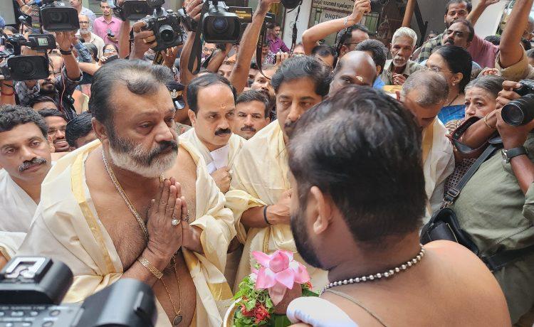 കോഴിക്കോട്: തൃശൂര്പൂരത്തിന്റെ നാട്ടില് നിന്നും വിജയിച്ച് കേന്ദ്രസഹമന്ത്രിയായി തെരഞ്ഞെടുക്കപ്പെട്ട സുരേഷ് ഗോപിയുടെ ആദ്യസന്ദര്ശനം സത്യത്തിന്റെ നഗരം എന്നറിയപ്പെടുന്ന കോഴിക്കോട്. ചൊവ്വാഴ്ച രാത്രി കരിപ്പൂരിലെത്തിയ സുരേഷ് ഗോപിക്ക് വിമാനത്താവളത്തില് ഉജ്വലസ്വീകരണമാണ് ലഭിച്ചത്. ബുധനാഴ്ച രാവിലെ ആറരയോടെ സാമൂതിരി രാജവംശത്തിന്റെ ആത്മീയകേന്ദ്രമായ തളിയില് ക്ഷേത്രദര്ശനം നടത്തി. ബിജെപി ജില്ലാപ്രസിഡന്റ് വി.കെ.സജീവന്,ദേവസ്വം എക്സിക്യൂട്ടീവ് ഓഫീഹസര് പി.എം.മനോജ്കൂമാര് തുടങ്ങിയവരുടെ സാന്നിധ്യത്തില് ക്ഷേത്രം പൂജാരി വിഷ്ണു നമ്പൂതിരി പൂര്ണകുംഭം നല്കി സുരേഷ്ഗോപിയെ സ്വീകരിച്ചു.
