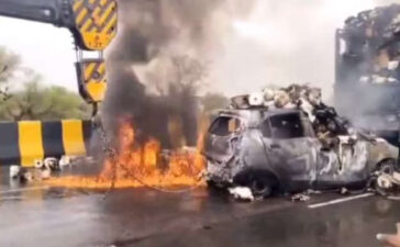 ട്രക്കുമായി കൂട്ടിയിടിച്ച് കാറിന് തീപിടിച്ചു; ഏഴു പേര് വെന്തു മരിച്ചു
