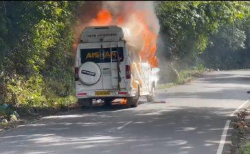 കുറ്റ്യാടി ചുരത്തിൽ ട്രാവലറിന് തീ പിടിച്ചു