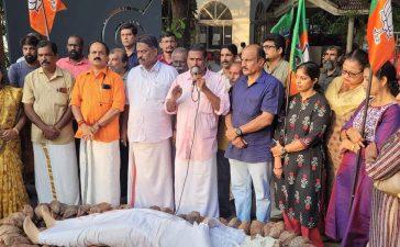 മാവൂര്റോഡ് ശ്മശാനം പ്രതികാത്മക ശവസംസകാരവുമായി ബിജെപി