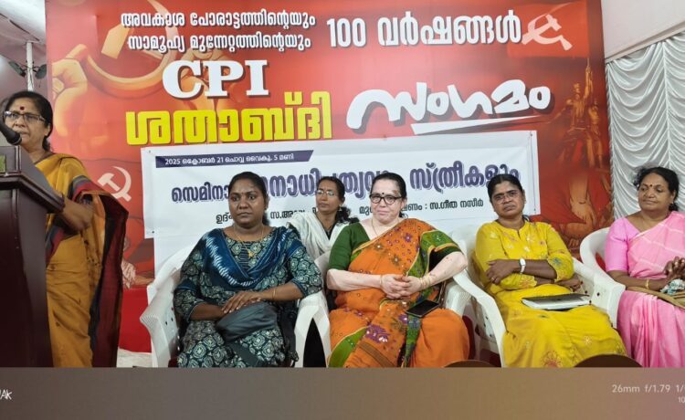 സ്ത്രീകൾക്ക് തുല്യാവകാശം ഉറപ്പാക്കുന്ന ഭരണഘടനയിലെ വ്യവസ്ഥകളെല്ലാം അട്ടിമറിക്കപ്പെടുകയാണ്. ജനാധിപത്യത്തിന്റെ നിർവചനം പോലും മാറ്റിയെഴുതേണ്ട കാലമാണിത്. ജനാധിപത്യം നടപ്പിലാകണമെങ്കിൽ ആദ്യം ലിംഗ സമത്വം ഉറപ്പാക്കണം. എന്നാൽ ഇന്ത്യയിൽ ലിംഗ അസമത്വം വർധിക്കുന്ന സ്ഥിതിയാണുള്ളത്. പാർലമെന്റിൽ വനിതകൾക്ക് 33 ശതമാനം സംവരണം ഉറപ്പാക്കണമെന്നും പി വസന്തം പറഞ്ഞു. മുതലക്കുളം മൈതാനിയിൽ നടന്ന ചടങ്ങിൽ കെ അജിന സ്വാഗതം പറഞ്ഞു. ടി ഭാരതി അധ്യക്ഷത വഹിച്ചു. കെ എസ് ജയ മുഖ്യപ്രഭാഷണം നടത്തി. ആശ ശശാങ്കൻ നന്ദി രേഖപ്പെടുത്തി. തുടർന്ന് ഇപ്റ്റ കോഴിക്കോട് അവതരിപ്പിക്കുന്ന കരോക്കെ ഗാനമേള അരങ്ങേറി. ഇന്ന് സ്വാതന്ത്ര്യ സമരവും വിദ്യാർത്ഥി -യുവജന പോരാട്ടങ്ങളും എന്ന വിഷയത്തിലുള്ള സെമിനാർ എഐഎസ്എഫ് സംസ്ഥാന പ്രസിഡന്റ് ബിബിൻ എബ്രഹാം ഉദ്ഘാടനം ചെയ്യും. അഡ്വ. പ്രശാന്ത് രാജൻ മുഖ്യപ്രഭാഷണം നടത്തും. നാളെ പലസ്തീൻ ഐക്യദാർഢ്യത്തിന്റെ ഭാഗമായി പ്രതിരോധ കാവ്യ സായാഹ്നം നടക്കും. 26ന് വൈകീട്ട് നാലിന് നടക്കുന്ന ശതാബ്ദി സംഗമം സിപിഐ ദേശീയ സെക്രട്ടറി അമർജിത്ത് കൗർ ഉദ്ഘാടനം ചെയ്യും.