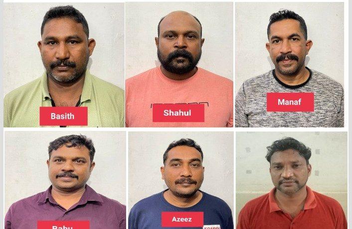 ഇരിങ്ങലൂർ സ്വദേശി അർഷാദ് ബാബു (41) നല്ലളം ഉള്ളിശ്ശേരിക്കുന്ന് ഷാഹുൽ ഹമീദ്(40) കിണാശ്ശേരി വാകേരിപറമ്പ് റാഷിദ് (46) കിണാശ്ശേരി ചെരണം കുളം പറമ്പ് അബ്ദുൾ മനാഫ് (42) മാത്തോട്ടം വാഴച്ചാൽ വയൽ അബദുൾ അസീസ് (38) എന്നിവരാണ് പിടിയിലായത്. കുറച്ച് ദിവസങ്ങൾക്ക് മുൻപേ മാത്തോട്ടം സ്വദേശി ഫൈസലിനെ പിടികൂടിയിരുന്നു.