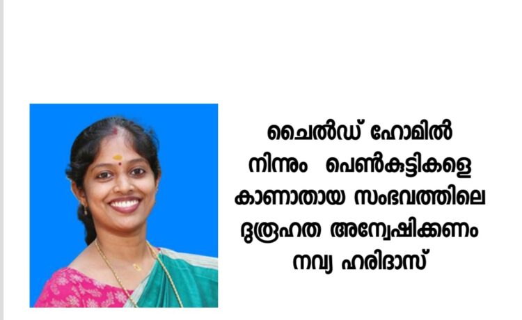 പെൺകുട്ടികളെ ബാംഗ്ലൂരിലെത്താൻ പുറത്തു നിന്നുണ്ടായ സഹായം ആരുടെതാണെന്നും സാമ്പത്തിക സഹായം നൽകിയവരെക്കുറിച്ചും സമഗ്രമായ അന്വേഷണം നടത്തണം. സർക്കാർ ചൈൽഡ് ഹോമിൽ മതിയായ സുരക്ഷ ഇല്ലാത്തത് സാമൂഹ്യ നീതി വകുപ്പിന്റെയും ജില്ല ഭരണകൂടത്തിന്റെയും ഗുരുതര വീഴ്ചയാണ് .ജില്ലാ ഭരണകൂടവും പോലീസ്സും സംഭവത്തെ നിസ്സാരവൽക്കരിക്കുകയാണെന്നും നവ്യ ഹരിദാസ് വാർത്താ കുറിപ്പിൽ പറഞ്ഞു.