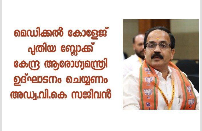 കോഴിക്കോട് :പ്രധാമന്ത്രി സ്വാസ്ഥ്യ യോജനപ്രകാരം 195 കോടി രൂപ ചിലവില് പണിത അത്യാധുനിക സൗകര്യങ്ങളോടുകൂടിയ മെഡിക്കല് കോളേജ് പുതിയ ബ്ലോക്കിന്റെ ഉദ്ഘാടനം കേന്ദ്ര ആരോഗ്യമന്ത്രിയെക്കൊണ്ട് ചെയ്യിക്കണമെന്ന് ബിജെപി ജില്ലാപ്രസിഡന്റ് അഡ്വ.വി.കെ.സജീവന് ആവശ്യപ്പെട്ടു. കൊറോണ സമയത്ത് പണിപൂര്ത്തിയാവാഞ്ഞിട്ടും ഈ ബില്ഡിംഗ് വളരെ യധികം ഉപകാരപ്പെട്ടിരുന്നു.