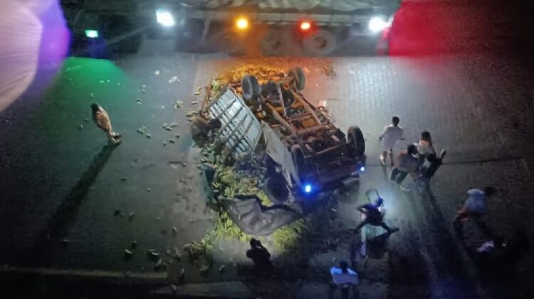 വാഴക്കുലയുമായി കർണാടകയിൽ നിന്ന് എത്തിയതായിരുന്നു പിക്കപ്പ് വാൻ. ഇന്ന് പുലര്ച്ചെ 1.30ഓടെയായിരുന്നു അപകടം. പരുക്കു പറ്റിയ രണ്ട് കര്ണാടക സ്വദേശികളെ കോഴിക്കോട് മെഡിക്കല് കോളജ് ആശുപത്രിയില് പ്രവേശിപ്പിച്ചു. പിക്കപ്പ് റോഡില് നിന്ന് മാറ്റി ഗതാഗതം പുനസ്ഥാപിച്ചു.