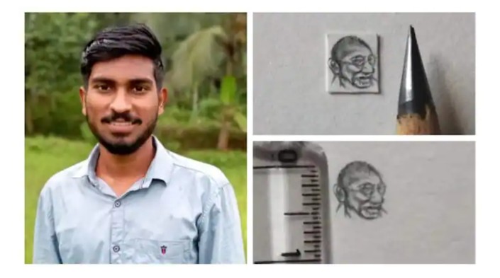 ആറ് മില്ലീമീറ്റര്‍ നീളത്തില്‍ വരച്ച ഗാന്ധിജിയുടെ ചിത്രത്തിലൂടെ റെക്കോര്‍ഡ് തീര്‍ത്ത് അനുരൂപ്