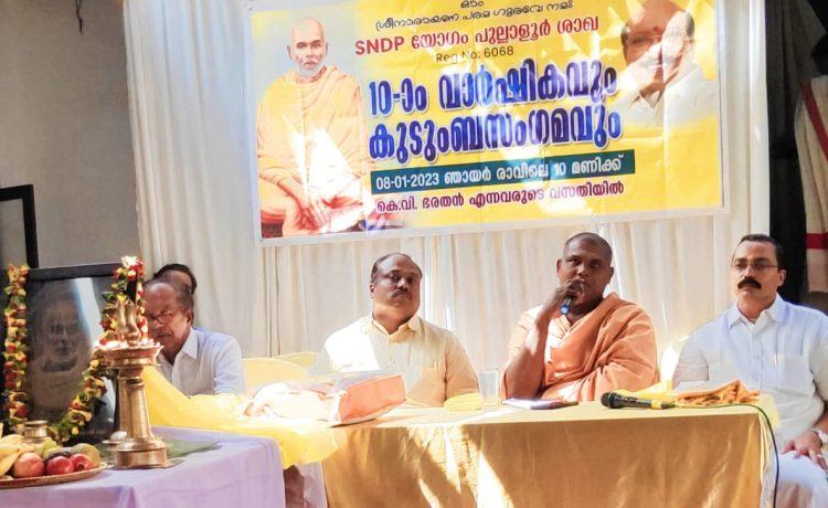 എസ്എൻഡിപി യോഗം പുല്ലാളൂർ ശാഖയുടെ പത്താമത് വാർഷിക പൊതുയോഗത്തിൻ്റെ ഉദ്ഘാടനം നിർവ്വഹിച്ച് സംസാരിക്കുകയായിരുന്നു അദ്ദേഹം.