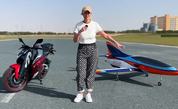 ഇതാണ് ഉത്തരം – അൾട്രാവയലെറ്റ് ഓട്ടോമോട്ടിവ്. പെർഫോമൻസ് മോട്ടോർസൈക്കിളുകൾ ഡിസൈൻ ചെയ്യുകയും നിർമ്മിക്കുകയും മാർക്കറ്റ് ചെയ്യുകയും ചെയ്യുന്ന അൾട്രാവയലെറ്റ് ഓട്ടോമോട്ടിവിന്റെ സ്വന്തം മോഡലായ അൾട്രാവയലെറ്റ് എഫ്77 മാക് 2 ആണ് സൂപ്പർകാർ ബ്ലോണ്ടിയുടെ ചാനലിൽ പ്രത്യക്ഷപ്പെടുന്നത്. ഒരു എയർസ്ട്രിപ്പിൽ ആർസി ജെറ്റ് വിമാനവുമായി ഡ്രാഗ് റേസ് ചെയ്യുകയാണ് അൾട്രാവയലെറ്റ് എഫ്77 മാക് 2.