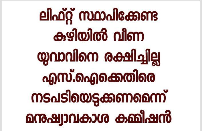 കോഴിക്കോട് : നിർമ്മാണത്തിലുള്ള കെട്ടിടത്തിന്റെ ലിഫ്റ്റ് സ്ഥാപിക്കേണ്ട കുഴിയിൽ വീണ നിലയിൽ കണ്ടെത്തിയ യുവാവിനെ പുറത്തെടുത്ത് ആശുപത്രിയിലെത്തിക്കാത്ത സബ് ഇൻസ്പെക്ടറുടെ പേരിൽ വകുപ്പുതല നടപടികൾ സ്വീകരിക്കണമെന്ന് മനുഷ്യാവകാശ കമ്മീഷൻ. ഉത്തരവിൻമേൽ സ്വീകരിച്ച നടപടികൾ ആഭ്യന്തരവകുപ്പു സെക്രട്ടറി രണ്ടുമാസത്തിനകം അറിയിക്കണമെന്നും ജുഡീഷ്യൽ അംഗം കെ. ബൈജുനാഥ് ഉത്തരവിൽ പറഞ്ഞു. 2019 സെപ്റ്റംബർ 26 ന് ബാലുശ്ശേരി എസ്.ഐ.യായിരുന്ന വിനോദിനെതിരെ നടപടിയെടുക്കാനാണ് ഉത്തരവ്.