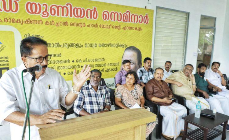 “മൂലധന താൽപര്യങ്ങളും മാധ്യമ തൊഴിലാളികളും എന്ന വിഷയത്തിൽ നടത്തിയ സെമിനാർ എ ഐ.ടി. യു സി സംസ്ഥാന ജനറൽ സെക്രട്ടറി കെ.പി. രാജേന്ദ്രൻ ഉദ്ഘാടനം ചെയ്തു. പണിയെടുത്താൽ കൂലി കിട്ടണമെന്ന അടിസ്ഥാന കാര്യം പോലും പല മേഖലയിലും സാധ്യമാകുന്നില്ലെന്നത് യാഥാർഥ്യമാണെന്നും ഇതിന് മാറ്റം വേണമെങ്കിൽ ട്രേഡ് യൂണിയൻ സംഘടനകളുടടെ ശക്തമായ മുന്നേറ്റം ആവശ്യമാണെന്നും കെ.പി. രാജേന്ദ്രൻ പറഞ്ഞു.