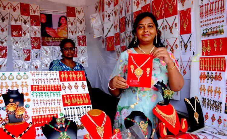 ചെറുതും വലുതുമായി കൗതുകമുണർത്തുന്ന മനോഹരമായ ആഭരണങ്ങളാണ് പുതുലിന്റെ സ്റ്റാളിൽ സജ്ജീകരിച്ചിരിക്കുന്നത്. കമ്മലുകൾ, മാലകൾ, ചോക്കർ ചെയിനുകൾ തുടങ്ങി വ്യത്യസ്ത ഡിസെെനുകളിലുള്ള ആഭരണങ്ങൾ ഇവിടെ കിട്ടും. പൂർണ്ണമായും നെല്ലുപയോഗിച്ചാണ് ഇവ നിർമ്മിച്ചിരിക്കുന്നത് എന്നതാണ് പ്രധാന ആകർഷണം. പല നിറങ്ങളിലും വലുപ്പത്തിലുമുള്ള മാലകളും കമ്മലുകളും അവയുടെ സെറ്റുകളും ലഭ്യമാണ്. സ്റ്റഡ് കമ്മലുകൾ മുതൽ വ്യത്യസ്ത നീളത്തിലുള്ള കമ്മലുകളുടെ ശേഖരം തന്നെ സ്റ്റാളിലുണ്ട്. സാരികൾക്ക് അനുയോജ്യമായ നീളത്തിലുള്ള മാലകൾ, ചോക്കർ എന്നിവയും ഇവിടെ ലഭ്യമാണ്. 50 മുതൽ 1000 രൂപവരെയാണ് വില.