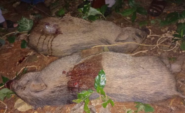 കോഴിക്കോട്: കോഴിക്കോട് കോട്ടൂളിയിൽ നാട്ടിലിറങ്ങിയ രണ്ട് കാട്ടുപന്നികളെ വനംവകുപ്പ് ഉദ്യോഗസ്ഥർ വെടിവെച്ചു. കോട്ടൂളി മീമ്പാലക്കുന്നിലാണ് കാട്ടുപന്നികളെ വെടിവെച്ചത്.ഇന്നലെ രാത്രി ആണ് സംഭവം. നാട്ടുകാരുടെ പരാതിയിലാണ് വനം വകുപ്പിന്റെ ഇടപെടൽ ഉണ്ടായത്. രണ്ടാഴ്ച മുമ്പ് കാട്ടുപന്നി ആക്രമണത്തിൽ ഒരാൾക്ക് പരിക്ക് പറ്റിയിരുന്നു.