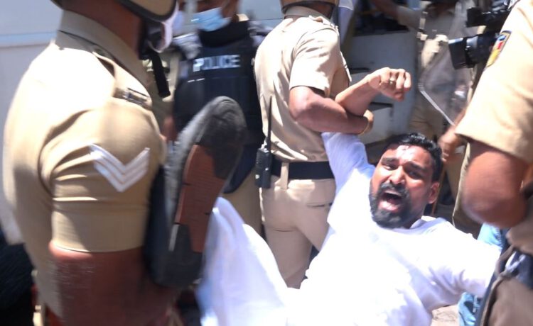 കോഴിക്കോട്;സ്വർണ്ണ കള്ളക്കടത്ത് സ്വപ്ന സുരേഷിൻ്റെ ആരോപണത്തിൻ്റെ അടിസ്ഥാനത്തിൽ മുഖ്യമന്ത്രി രാജിവെക്കണമെന്നാവശ്യപ്പെട്ട് യുവമോർച്ച കോഴിക്കോട് കളക്ട്രേറ്റിലേക്ക് മാർച്ച് സംഘടിപ്പിച്ചു. എരഞ്ഞിപ്പാലത്ത് നിന്നാരംഭിച്ച മാർച്ച് കളക്ട്രേറ്റ് കവാടത്തിൽ പോലീസ് തടഞ്ഞു.തുടർന്ന് പ്രവർത്തകർ റോഡിൽ കുത്തിയിരുന്ന് ഉപരോധിച്ചു.